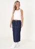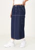 Brave Soul Indigo Denim Midi Skirt with Utility Pockets and Contrast Seams