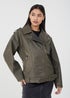 Brave Soul Khaki Vintage PU Oversized Biker Jacket