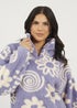 Brave Soul Lilac Quarter Zip Flower Print Sherpa Fleece