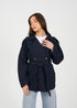 Brave Soul Navy Double Breasted Short Mac With Self Tie Belt