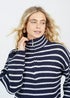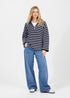 Brave Soul Navy Half Zip Striped Fisherman Knit Jumper