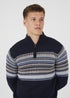 Brave Soul Navy Quarter Zip Fair Isle Jumper