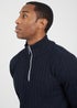 Brave Soul Navy Quarter Zip Funnel Neck Rib Knit Jumper