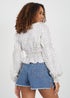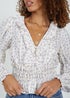 Introducing this ditzy print top from Brave Soul, a charming addition to your wardrobe. Featuring a deep V-neck design and delicate marie style sleeves, while the ruched waist enhances your silhouette. Finished with a frill collar and cuffs adding a touch of vintage flair, this top is perfect for any occasion. Model wears UK size S.