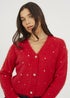 Brave Soul Red Fluffy Knit Cardigan With Jewel Embellishment