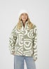 Brave Soul Soft Green Graphic Heart Print Zip Through Sherpa Fleece
