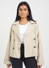 This short classic double-breasted mac from Brave Soul is a chic twist on a classic style. Cut in a hip-length, featuring belt strap and buckle details on the cuffs and mock horn trims. Includes microfibre coating and is available in a longer length. The perfect addition to any outfit this season. We recommend sizing down as this product fits big. Model wears UK size 8.