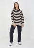 Brave Soul Taupe Fine Stripe Oversized Knitted Jumper