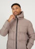 Brave Soul Taupe Longline Padded Hooded Jacket