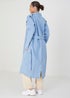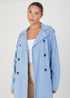 This denim double-breasted trench coat from Brave Soul is a staple for the season. This mac is maxi in length and features buckle cuffs, raglan sleeves, two side pockets, and double breasting with a waist tie fabric belt. Includes microfibre coating. We recommend sizing down as this product fits big.