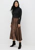 Learn moreAdd a touch of glam to your wardrobe with this stunning Bronze Metallic Midi Skirt. Perfect for making a statement at parties, dinners, or any special occasion, this skirt combines elegance with a modern edge. Pair it with strappy heels and a clutch for a glamorous evening look.