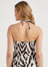 Take a walk on the wild side with this stunning tankini top! Designed in natural tones, it features a practical halter neck tie with chic ruched detailing at the front for extra style points. Constructed with an on-trend animal print, it's destined to be a favourite this summer. Pair with the matching bottoms (S2937466_C071). Model Height: 5ft 9.