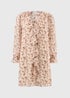 Light, floaty and effortlessly feminine, this chiffon mini dress brings a romantic touch to day-to-night dressing. The soft beige base is lifted with a brown floral print, while a plunging neckline and cascading ruffle front add striking movement. Cuffed long sleeves balance the mini hem for a flattering, wearable shape that works for brunch, evenings out or special occasions.