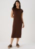 Learn moreShowcase your bold style in our Brown Jersey Midi Dress, a captivating fusion of edge. Crafted from breathable jersey fabric, this dress flatters your curves, ensuring both comfort and a striking silhouette. This dress features a side slit at each side, for easy movement and a classic effortless t-shirt design. Elevate your everyday look by pairing the dress with ankle boots and a leather jacket or add a touch of femininity by layering a lace cardigan over the dress.