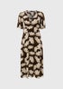 Brown Large Floral V Neck Midi Dress