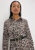 Learn moreStay on-trend this season with our stunning Brown Leopard Belted Shirt Dress. Crafted from high-quality fabric, this versatile dress offers both comfort and style. Available in a rich brown hue, with a striking leopard print, it's perfect for adding a touch of fun to any ensemble. Featuring a relaxed fit for effortless style, detailed with a gold buckle belted waist that creates a flattering silhouette, a classic collar for a polished look, a button-down front for easy dressing, and long sleeves with adjustable cuffs for versatile wear. For a casual daytime look, pair the shirt dress with sneakers and a cross-body bag or for a night out, elevate your style by adding heels, statement jewellery, and a clutch.