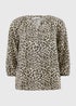 • Brown Leopard Print 3/4 Sleeve Popover Blouse