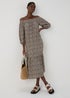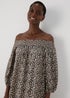 Dare to be captivating with our Brown Leopard Print Bardot Dress Step into the realm of timeless style and be the envy of every fashionista. This maxi dress is an absolute showstopper, designed with a chic and captivating leopard print that exudes an air of sophistication. Featuring a flattering straight neckline, that accentuates your décolletage, long cuffed sleeves for a touch of coverage and a free flowing silhouette. Dress it up with strappy heels and a clutch for a glamorous evening out or layer it with a denim jacket and sneakers for a relaxed and chic weekend look.