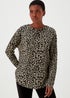 Learn moreFeel young, wild and free in this stunning leopard print top. Styled with a brown base with black detailing, it features a crewneck for a comfortable fit , cosy long sleeves and dropped shoulders for a sleek finish. Model Height: 5ft 8.