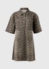 Brown Leopard Print Denim Mini Shirt Dress