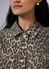 Make a bold statement with this standout denim mini. Designed with an eye-catching brown leopard print, this shirt dress blends classic denim structure with a playful, fashion-forward edge. The mini length keeps it fresh and flattering, while the shirt-style silhouette adds an effortless, wearable feel. Additional style notes include large chest pockets and a collared button placket for a smart finish. Easy to dress up or down, it’s a go-to piece for days when you want impact without trying too hard.