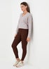 Crafted from soft ribbed fabric for a comfortable texture, this pair of leggings is finished in a versatile chocolate brown colourway with the ideal amount of stretch. Great for teaming with all your casual favourites. Model Height: 5ft 9 1/2.