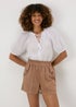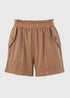 Learn moreDesigned for a relaxed, effortlessly chic aesthetic, the Brown Paperbag Shorts from our ladieswear collection boasts a combination of comfort and style. Crafted from high-quality material, these shorts promise durability and a smooth feel against your skin. With a relaxed fit and a paperbag elasticated waist for flattering comfort. The versatile brown hue, is ideal for mix-and-match outfits and the seam detailing and functional side pockets add that utility look. Pair with a crisp white shirt, tucked in, and accessorize with a delicate necklace for a classic office look.