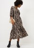Step out in effortless style with the Brown Patterned Puff Sleeve Midi Dress. Featuring a flattering midi length and a timeless all-over pattern, this dress is designed to take you from day to night with ease. The puff sleeves add a touch of volume and femininity, while the lightweight fabric ensures comfort all day long.