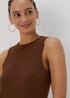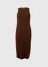 Crafted with meticulous attention to detail, this dress features a racer-style neckline that gracefully accentuates the shoulders and collarbone. The ribbed texture adds a touch of sophistication while ensuring a snug fit that highlights the natural contours of the body. Falling to mid-calf length, this piece offers both modesty and allure, making it a versatile addition to any wardrobe. Whether paired with heels for an evening out or sandals for a casual brunch, this dress promises style without compromising comfort.