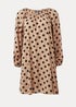 Learn moreThis versatile dress will see you through workdays and evenings out alike. Styled with a timeless brown spot print and featuring frill detailing to the skirt for a sweet touch, this soft mini dress is finished with elasticated sleeves and a playful neckline. Wear it with sandals or loafers to complete the look.