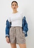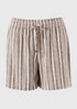 Keep cool and comfortable on hot days in these brown striped shorts. Designed with a stretchy elasticated waistband and drawcord for a personalised fit, they feature handy side and back pockets for practicality. The relaxed flippy fit keeps them breezy and easy to move in, making them perfect for pairing with simple tees or lightweight blouses for effortless summer style. Their soft linen/viscose blend makes them a dream to wear.