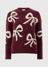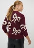 Shine with understated elegance in the Burgundy Bow Lurex Jumper, a perfect blend of cosy comfort and festive sparkle. Woven with subtle lurex threads that shimmer beautifully under the light, this jumper adds a touch of glamour to your everyday style.