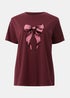 Sweet, simple, and effortlessly stylish — this Burgundy Bow Print T-Shirt adds a playful twist to your everyday look. Featuring a charming bow graphic on a rich burgundy backdrop, it’s the perfect blend of cute and casual. Crafted from soft, breathable cotton, this tee offers all-day comfort with a flattering classic fit. Whether you're pairing it with jeans, skirts, or layering it under a jacket, it’s an easy win for laid-back style with a feminine touch.