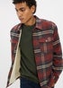 Stay cosy and stylish with the Burgundy Check Borg Lined Shacket. Blending the look of a shirt with the warmth of a jacket, this piece features a rich burgundy check pattern and a soft borg lining for added insulation. Perfect for layering on cooler days, it combines practicality with a smart-casual edge.