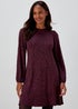 Learn moreThis mini dress is perfect for any occasion. Featuring a burgundy dash print, a swing silhouette and long sleeves, what's not to love? Style with tights and ankle boots for a cute daytime look.