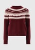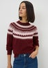 Bring classic winter charm to your wardrobe with our Burgundy Fair Isle Knit Jumper. Featuring a traditional Fair Isle pattern across the chest and sleeves, this cosy knit is a seasonal favourite made modern with rich burgundy tones and a relaxed fit. It offers warmth without the bulk—perfect for layering over shirts or under coats. The ribbed crew neck, cuffs, and hem keep the silhouette clean and comfortable, while the intricate knit pattern adds a festive yet wearable touch.