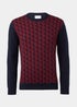 Inject timeless style into your jumper collection with this charming addition. Styled in burgundy, it features a charming geo print, cosy long sleeves and a classic crewneck for a familiar fit. Crafted with a soft cotton bend, it's finished with ribbed hems for ultimate comfort. Model Height: 6ft 2.