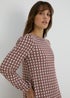 Learn moreStep into the spotlight with our geometric mini dress in Burgundy, the epitome of sophistication and effortless charm. Crafted from super soft fabric, this mini dress boasts a soft and smooth texture, ensuring unparalleled comfort all day long. Its rich burgundy hue exudes elegance combined with a cream base colour for a gorgeous contrast, making it a must-have for any fashion-forward woman. Pair it with strappy heels and a statement necklace for an elegant evening look or dress it down with trainers and a denim jacket for a casual daytime outfit.