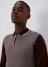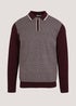 Burgundy Geometric Print Long Sleeve Zip Up Polo Shirt
