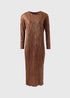 Burgundy Metallic Plisse Midi Dress - Size 12