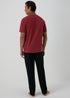 This sophisticated loungewear set exudes comfort without compromising on style. Crafted from premium-quality fabric, it offers a satisfyingly soft touch against your skin. The rich burgundy colour adds a vibrant touch to this classic ensemble. This set features a short sleeve burgundy t-shirt, with black long elasticated bottoms. This set is perfect for lounging all year round.
