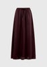 Eternally chic, this burgundy satin maxi skirt drapes beautifully with a floaty silhouette that moves with every step. The elasticated waistband and working drawcord provide a comfortable, adjustable fit, making it perfect for both relaxed days and dressier occasions. Its smooth satin finish adds a subtle sheen for a sophisticated touch.