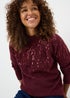 Add a touch of sparkle to your cold-weather wardrobe with this Burgundy Scatter Sequin Jumper. Crafted from a soft, cosy knit, it features delicate scattered sequins across the front for a subtle shimmer that’s perfect for both day and evening wear.