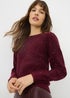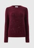 Crafted from luxurious burgundy yarn, this jumper is adorned with shimmering sequins that catch the light beautifully. With its relaxed fit and long sleeves, it's designed to flatter your figure and keep you feeling cosy on even the chilliest of evenings.