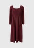Burgundy Shirred Long Sleeve Midi Dress - Size 8