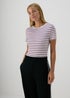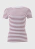 With its striking burgundy and white stripes, this fitted t-shirt is perfect for making a statement. Its classic design ensures it can be dressed up or down for any occasion with a pop of colour added to your wardrobe with the burgundy stripes. The fitted design creates a flattering silhouette, making for a confident wear while the 100% cotton and short sleeves ensure a cool and comfortable wear. Pair it with jeans and trainers for a casual day look or dress it up with a skirt and heels for a night out.