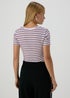 Learn moreWith its striking burgundy and white stripes, this fitted t-shirt is perfect for making a statement. Its classic design ensures it can be dressed up or down for any occasion with a pop of colour added to your wardrobe with the burgundy stripes. The fitted design creates a flattering silhouette, making for a confident wear while the 100% cotton and short sleeves ensure a cool and comfortable wear. Pair it with jeans and trainers for a casual day look or dress it up with a skirt and heels for a night out.