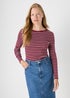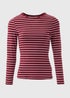With its striking burgundy and white stripes, this fitted t-shirt is perfect for making a statement. Its classic design ensures it can be dressed up or down for any occasion with a pop of colour added to your wardrobe with the burgundy stripes. The fitted design creates a flattering silhouette, making for a confident wear while the 100% cotton and long sleeves ensures a comfortable wear. Pair it with jeans and trainers for a casual day look or dress it up with a skirt and heels for a night out.