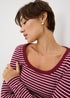 A wardrobe staple, this long-sleeved scoop neck tee is the perfect addition to your autumn wardrobe. With its rich burgundy hue, this top is sure to turn heads wherever you go.