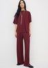 Burgundy Woven Plisse Co Ord Trousers